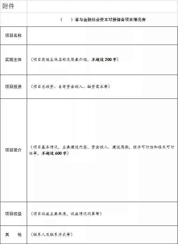 為進(jìn)一步拓寬農(nóng)業(yè)投融資渠道,優(yōu)化農(nóng)業(yè)資金投入方式,大力引導(dǎo)金融社會(huì)資本投入農(nóng)業(yè)農(nóng)村領(lǐng)域,促進(jìn)現(xiàn)代農(nóng)業(yè)產(chǎn)業(yè)發(fā)展和農(nóng)村公共服務(wù)條件改善,擬梳理儲(chǔ)備一批農(nóng)業(yè)農(nóng)村領(lǐng)域重點(diǎn)項(xiàng)目,與金融機(jī)構(gòu)和社會(huì)資本投資對(duì)接。現(xiàn)就有關(guān)事項(xiàng)通知如下: