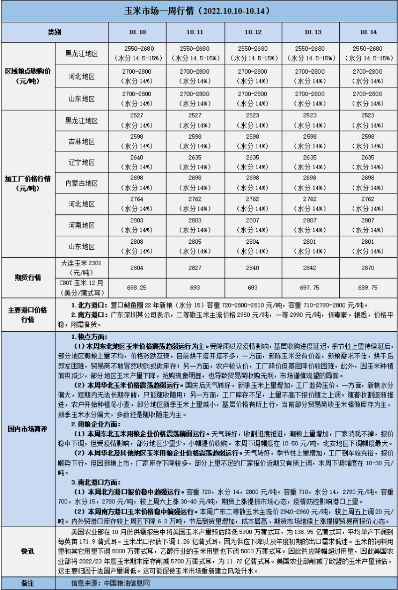 天然橡膠、大豆、玉米市場一周行情(2022.10.10-10.14)