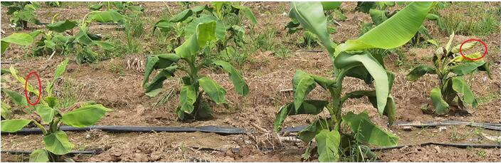 香蕉病蟲害防控項目專家組提醒產(chǎn)區(qū),應(yīng)加強蕉園苗期花葉心腐病的防控。