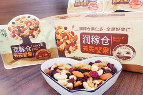 潤稼倉天天堅果:潤稼倉天天堅果根據(jù)不同年齡人群每日攝取堅果營養(yǎng)區(qū)間25g-30g,選取中間參數(shù)27g,采用4種果仁,2種果干配料,營養(yǎng)搭配均衡,富含鈣、維生素、不飽和脂肪酸等,包裝攜帶方便,更適合廣大消費(fèi)者食用。