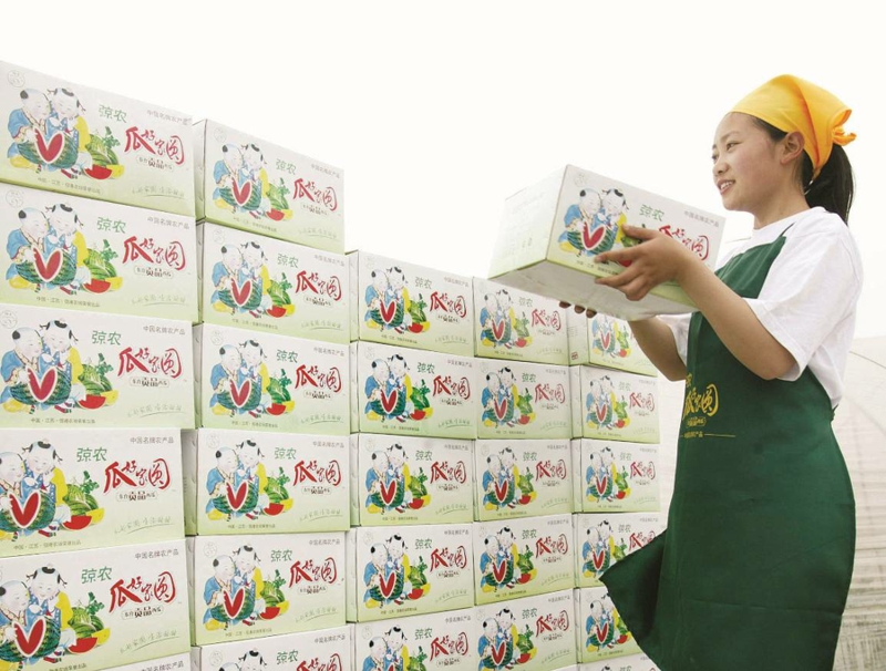 農(nóng)場黨委以問題為導(dǎo)向,成立西瓜產(chǎn)業(yè)發(fā)展領(lǐng)導(dǎo)小組,確立西瓜產(chǎn)業(yè)總體發(fā)展思路,將大棚西瓜的年種植面積穩(wěn)定在1萬畝左右,同一塊土地間隔4~5年種植一次大棚西瓜?!八递喿鞣N植”模式不僅西瓜品質(zhì)、產(chǎn)量上去了,而且病蟲害少了,土壤結(jié)構(gòu)改善了。協(xié)會(huì)制定并下發(fā)了標(biāo)準(zhǔn)化技術(shù)規(guī)程、《無公害、綠色西瓜生產(chǎn)手冊》,出臺(tái)了“關(guān)于加強(qiáng)環(huán)境保護(hù)建設(shè)生態(tài)農(nóng)場工作的意見” 和“關(guān)于做好無公害、綠色農(nóng)產(chǎn)品質(zhì)量追溯工作的意見”。西瓜產(chǎn)業(yè)從低水平、無序化的一家一戶式生產(chǎn)向組織化、規(guī)?;?、標(biāo)準(zhǔn)化、無公害、綠化、有機(jī)農(nóng)產(chǎn)品生產(chǎn)邁進(jìn)。2002年注冊了“弶農(nóng)”牌商標(biāo),2008年獲得“中國名牌農(nóng)產(chǎn)品”、“江蘇名牌產(chǎn)品”等榮譽(yù)稱號,“弶農(nóng)”牌西瓜步入品牌化發(fā)展階段。2020年“弶農(nóng)”牌西瓜成功獲批江蘇省首批“江蘇精品”。