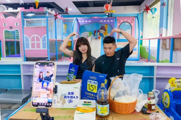 為了擴(kuò)大影響力,團(tuán)隊(duì)不局限于室內(nèi)直播,多次“走出去”探尋新的發(fā)展和機(jī)遇。廣泛征集話(huà)術(shù),匯聚眾人智慧,為主播提供更自然真實(shí)的表達(dá)素材;與蘇州農(nóng)墾主播連麥,細(xì)致講解“蘇墾15度鮮大米”的種植加工特點(diǎn);冒雨前往東辛農(nóng)場(chǎng)優(yōu)然牧業(yè),通過(guò)監(jiān)控實(shí)時(shí)向觀(guān)眾展示奶牛生活;走進(jìn)超市、菜市場(chǎng),甚至利用藥廠(chǎng)食堂的午休時(shí)間和市民互動(dòng)?!懊繄?chǎng)戶(hù)外直播都挺累,但平均能漲粉近百人,再累也值得。”團(tuán)隊(duì)負(fù)責(zé)人說(shuō),“我們要讓更多人了解‘蘇墾優(yōu)品’的優(yōu)異品質(zhì)?!?