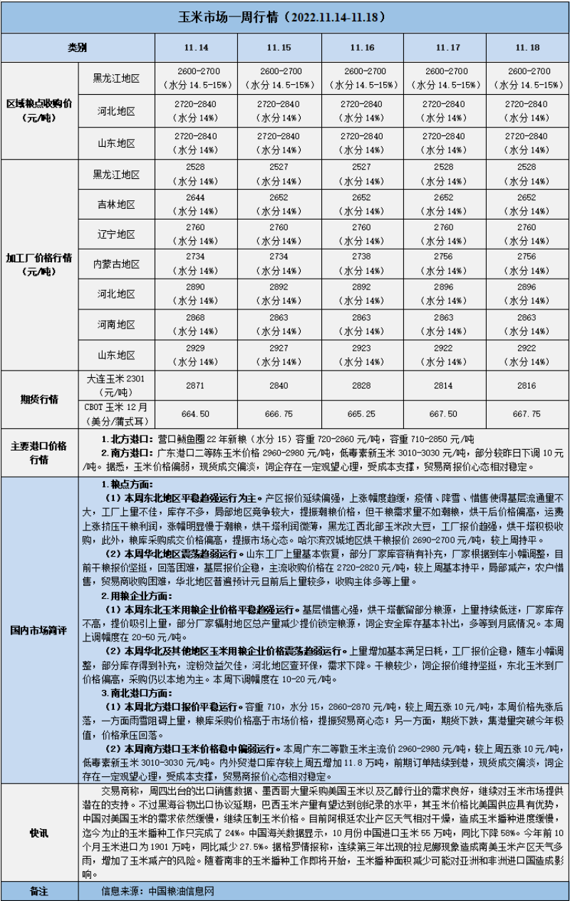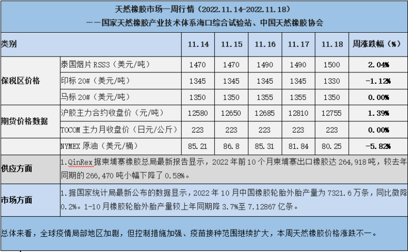 天然橡膠、大豆、玉米市場一周行情(2022.11.14-11.18)