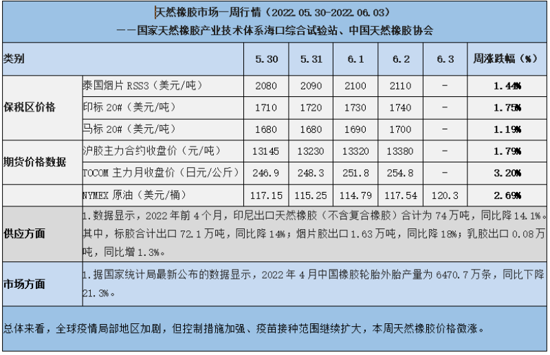 天然橡膠、大豆、玉米市場(chǎng)一周行情(2022.05.30-06.03)